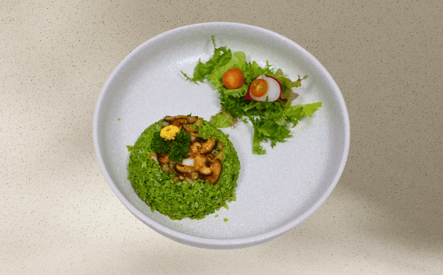 “Lá É” fried-rice with mushroom – 罗勒叶鲜菇炒饭