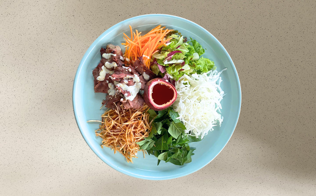 Tropical Salad – 含有包菜,香脆芋头,胡萝卜,牛肉,百香果酱