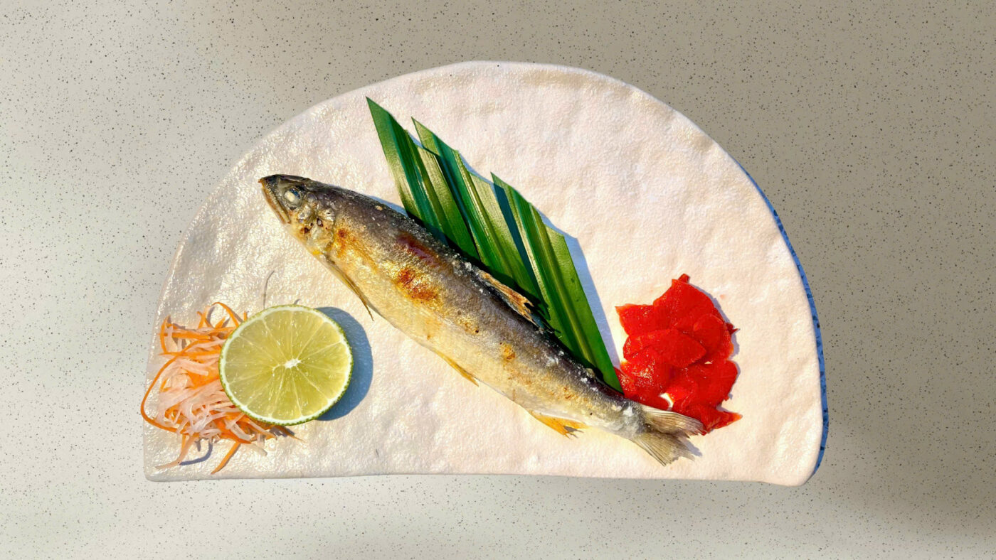 Grilled Japanese Ayu fish with salt – 香鱼盐烤